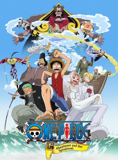 طاقم قبعة القش على شاطئ استوائي ذهبي، يستريحون ويضحكون، وفجأة تظهر لحظة درامية حيث تُسرق سفينتهم 'قوينق ميري' على يد لصوص غامضين، في الأفق يظهر إخوة اللصوص وهم يخططون لسرقة ساعة الماس في جزيرة الساعة، السماء مشحونة بالتوتر والمغامرة، الطاقم يتجه نحو الجزيرة، معركة كبيرة تدور في برج الساعة، تفاصيل دقيقة للسفن، الساعة العملاقة، والأبطال في أوضاع قتالية، أسلوب رسوم توضيحية واقعية وملهمة، ألوان زاهية وديناميكية الحركة واضحة